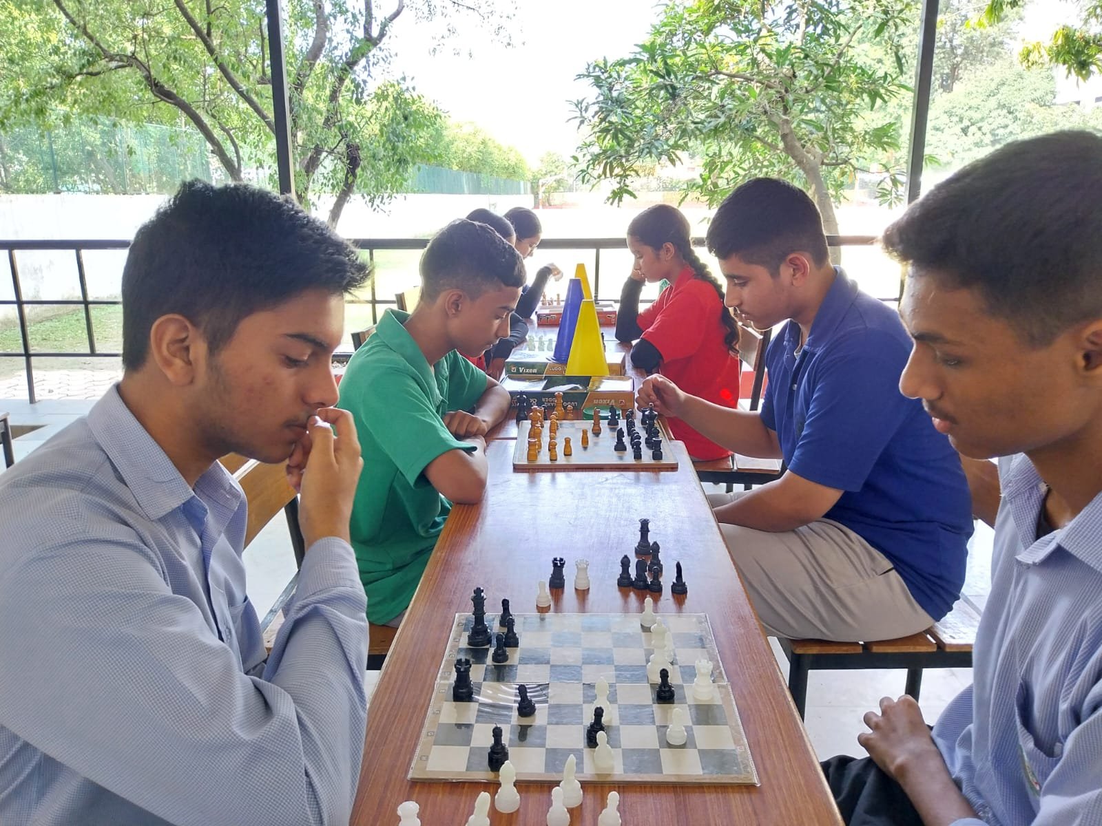 The Vivekananda School witnessed a battle of wits and strategy as it hosted a Chess Competition on October 4, 2025. Students from different classes and houses participated with great enthusiasm. They showcased their intellectual prowess and chess skills. The tournament was a perfect blend of competition and sportsmanship, with students engaging in intense yet friendly matches. The chessboard became a stage for strategic masterminds, with each player carefully planning their moves to outplay their opponents. The participants demonstrated exceptional focus and healthy competition