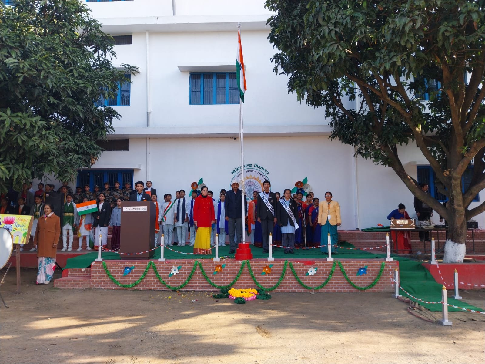 Draped in the tricolour, the Vivekananda School courtyard became a stage for a magnificent celebration of 77th Republic Day on 26 January 2026, echoing with the spirit of unity. The event commenced with the hoisting of the Indian National Flag by the Principal Mr. A. K. Singh, filling hearts with patriotism followed by the harmonious rendition of the anthem and uplifting group songs. Class VII marched in unison, a river of discipline and order, flowing in procession beside the proud school cabinet. The school echoed with the vibrant spirit of patriotism as the primary and senior students delivered patriotic dances, songs, and slogans. The Principal, in his address highlighted the significance of the day and enthralled the audience with motivational stories. The commemoration was a tribute to the pride and timeless values embodied in our constitution.