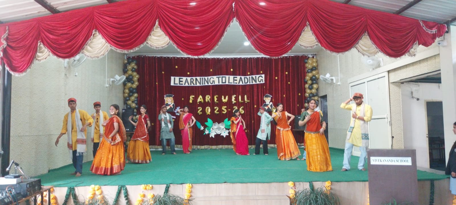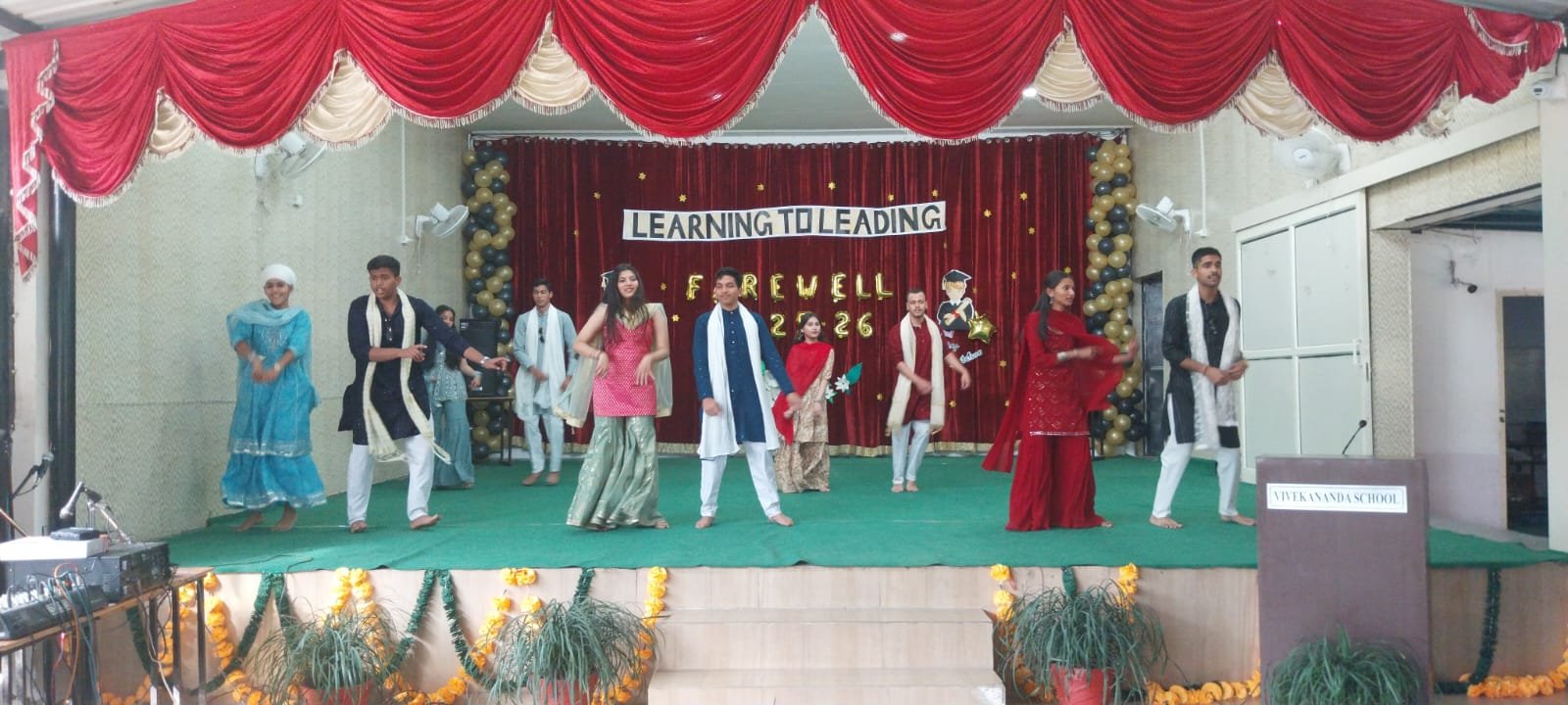 The farewell ceremony for the outgoing class 12 students of Vivekananda School was organised with great enthusiasm and dignity on 6th February 2026 in the school auditorium. The event was thoughtfully planned and conducted by the students of class XI to express gratitude, respect and best wishes to their seniors. The theme of the ceremony ‘Learning to Leading’ beautifully reflected the transformation of students from learners into confident and responsible leaders. The cultural segment added charm and vibrance to the programme. Energetic dance performances and a skit were presented by the juniors, which captivated the audience. The melodious music that followed added a dash of joy, creating an atmosphere of jubilation. The highlight of the evening was the interactive games for the seniors, which had them reminiscing about their school days and laughing together. These moments of levity strengthened bonds and created memories to cherish. The Principal’s inspiring speech resonated with the graduating class, urging them to embrace leadership and excellence in all endeavours. The ceremony culminated with the award distribution, honouring the achievements of the students in academics, sports and extracurricular activities. The programme concluded with a vote of thanks, expressing sincere gratitude to the Principal, teachers, staff members and students for their cooperation and support. Overall, the farewell ceremony was a memorable and an inspiring occasion. It strengthened the bond between juniors and seniors and marked the beginning of a new and promising journey for class XII students.